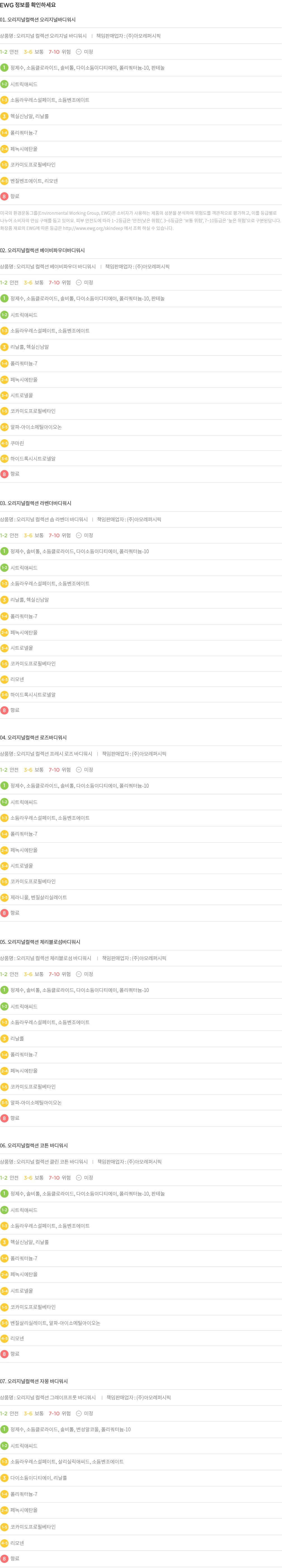 01. 오리지널컬렉션 오리지널바디워시 ・ 중량 : 1통(910g)