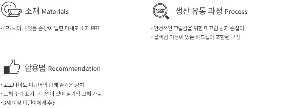 ・ 특징 : 2,310여 개의 초미세모가 식모된 칫솔이에요. 칫솔캡이 함께 제공돼 위생적인 보관이 가능합니다.