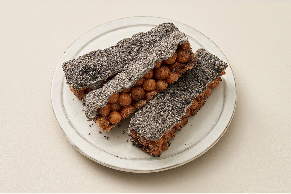 겉은 바삭, 속은 촉촉한 청년제과의 말랑말랑 흑임자 꿀오랑을 소개할게요. 바삭하게 튀겨낸 퍼핑 스낵을 쌀조청, 꿀, 버터 등에 볶아 만든 오란다인데요. 윗면에 부드러운 흑임자 화이트 초콜릿을 얹고, 그 위에 검은깨 가루 토핑을 솔솔 뿌려 더욱 색다른 맛으로 완성했답니다. 말랑한 식감에 달콤하고 고소한 맛으로 누구나 부담 없이 드시기 좋을 거예요. 커피나 차에 곁들여도 아주 잘 어울리니, 간편하게 근사한 다과상을 완성해 보세요.