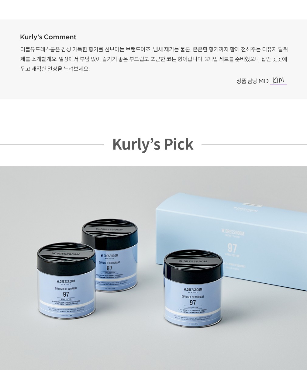 [더블유드레스룸] 퍼퓸 디퓨저 탈취제 에이프릴코튼 (110gX3개입)