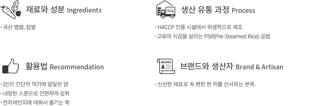 - 조개류(전복, 바지락 포함) 함유 * 계란, 우유, 메밀, 땅콩, 대두, 밀, 고등어, 게, 새우, 돼지고기, 복숭아, 토마토, 아황산류, 호두, 닭고기, 쇠고기, 오징어, 잣, 조개류(굴, 홍합 포함) 혼입 가능