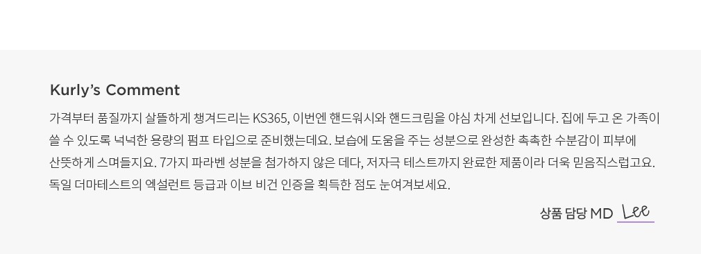 ・ 사용감 : 펌프를 누르는 순간 풍성한 거품을 바로 만날 수 있어요. 잔여감 없이 말끔히 씻겨 내려가며, 촉촉함이 오래 유지돼요.