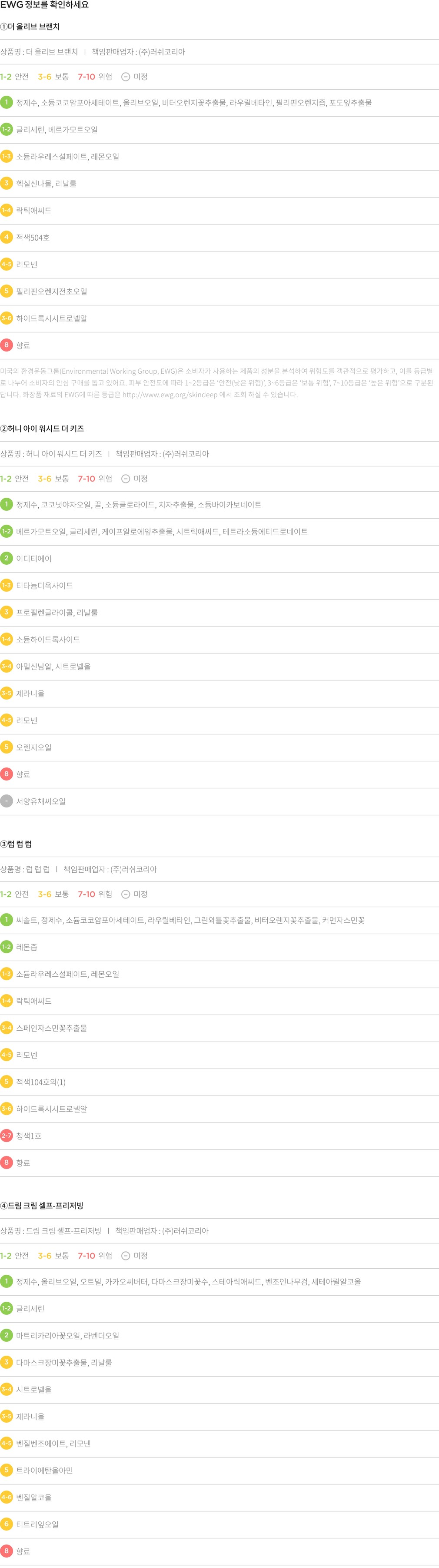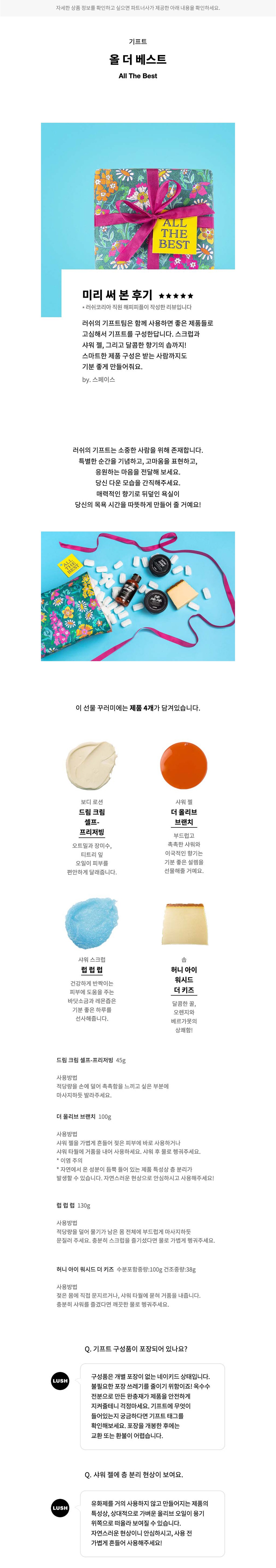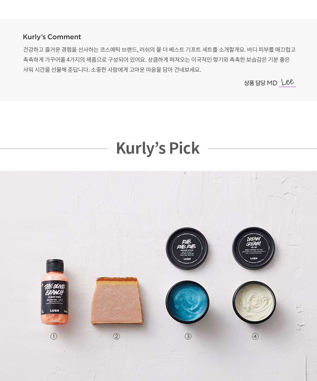올 더 베스트 기프트 ・ 구성 : ①더 올리브 브랜치, ②허니 아이 워시드 더 키즈, ③럽 럽 럽, ④드림 크림 셀프-프리저빙