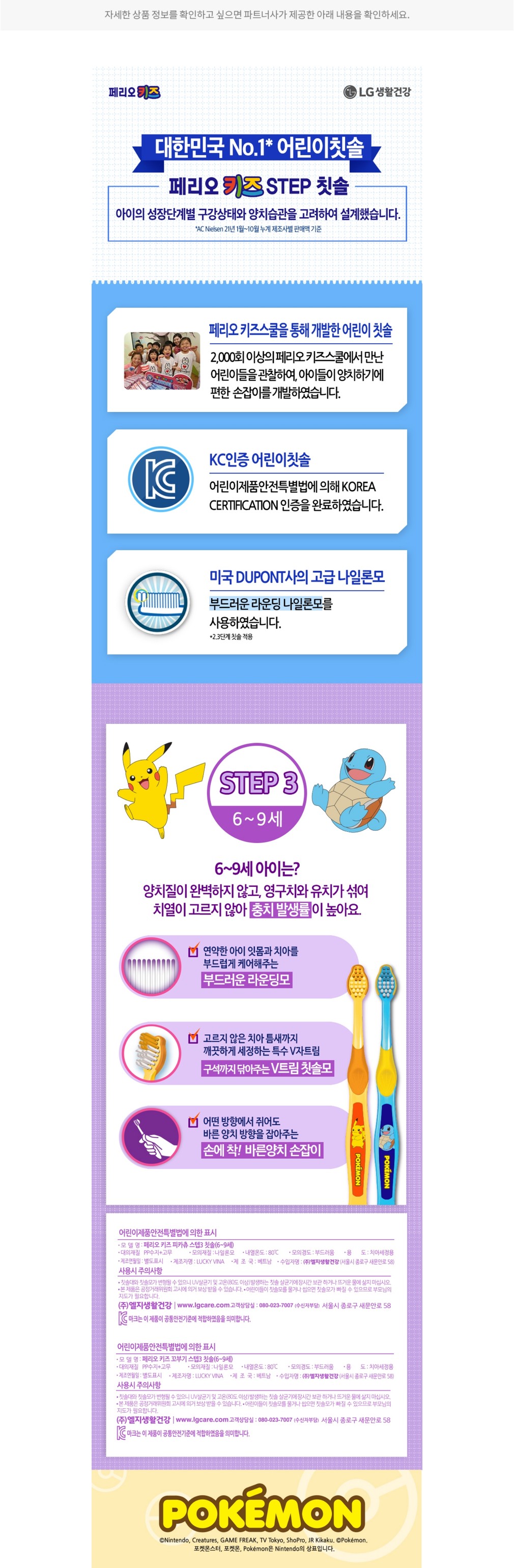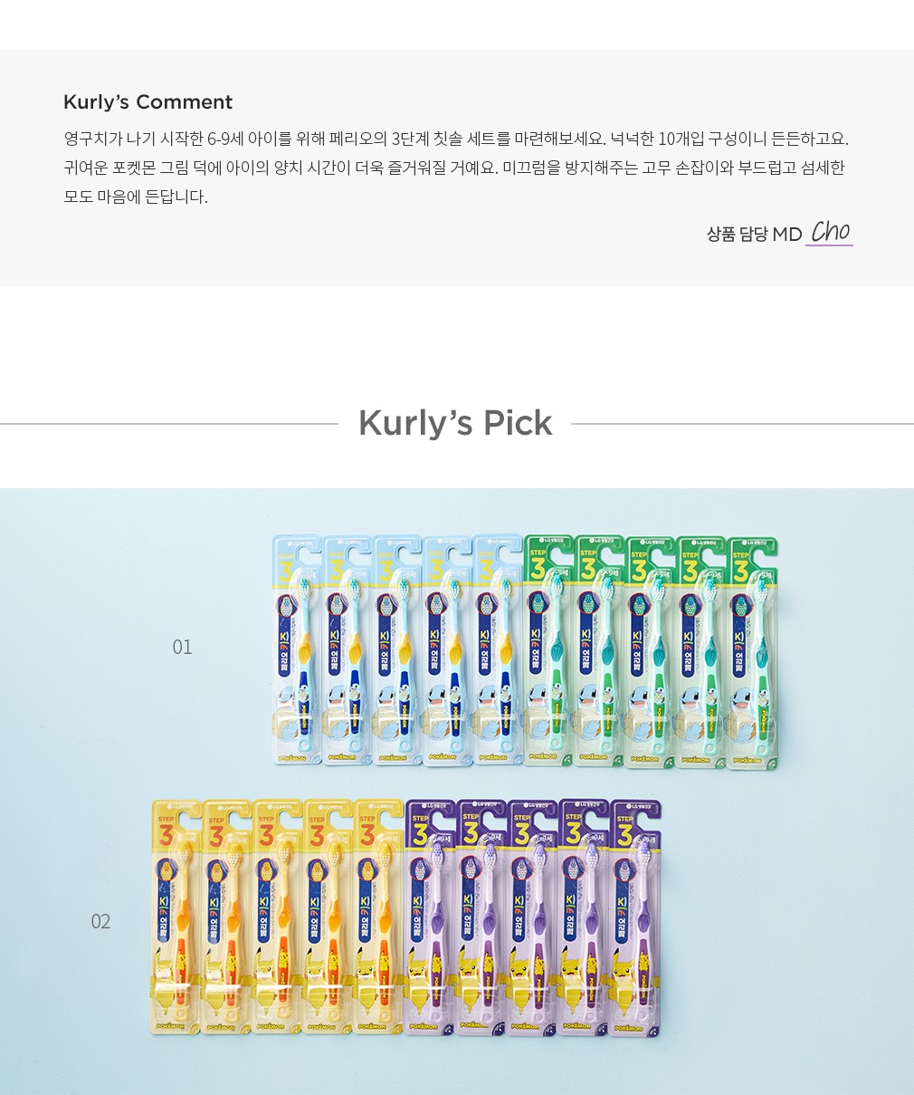 01~02. 키즈 칫솔 3단계 ・선택 가이드 : ①꼬부기, ②피카츄 중 아이의 취향에 따라 선택하세요.