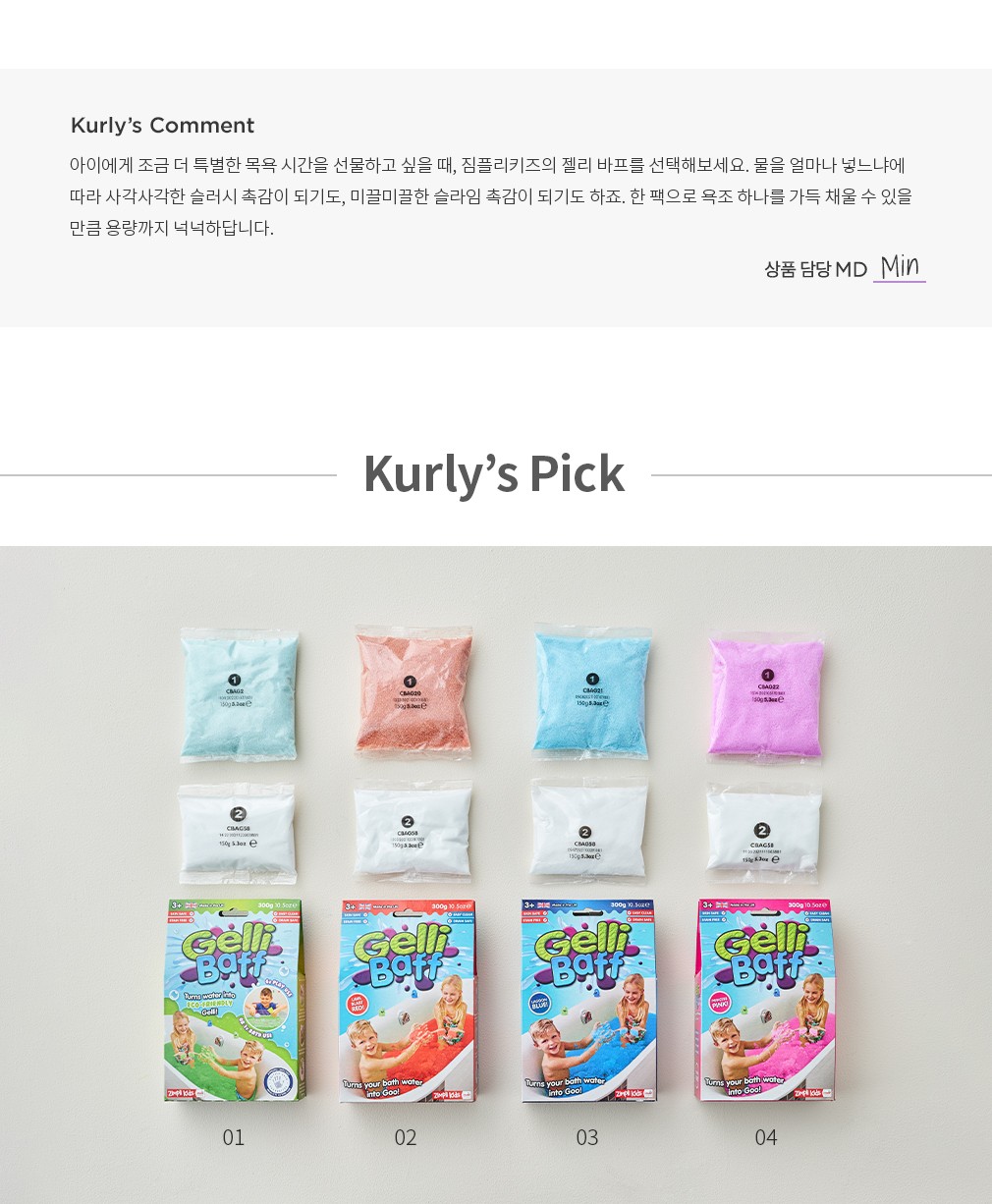 01~04. 유아 목욕놀이 젤리 베프 ・선택가이드 : ①그린, ②레드, ③블루, ④퍼플 중 선택하세요.