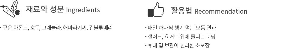 - 밀, 호두 함유 - 본 제품은 난류, 메밀, 잣, 땅콩, 밀, 고등어, 게, 새우, 돼지고기, 복숭아, 토마토, 닭고기, 쇠고기, 오징어, 조개류(굴, 전복, 홍합 포함), 아황산류를 사용한 제품과 같은 생산시설에서 포장하였습니다.
