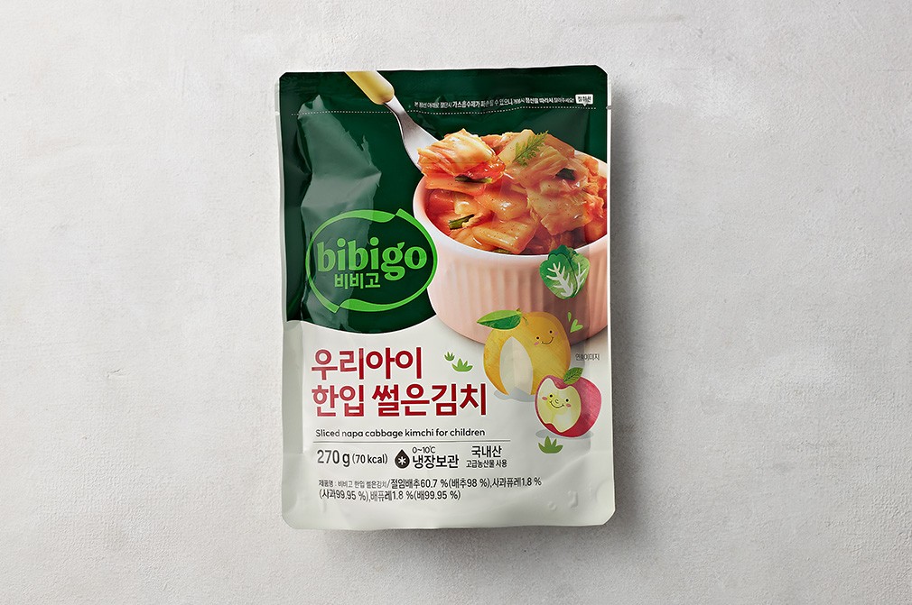 식탁에 없어서는 안 될 음식, 김치 먹는 습관을 아이에게 들이고 싶은 분들이라면 이 제품을 유심히 봐주세요. 비비고 한입 썰은 김치는 고운 고춧가루를 사용해 자극적인 매운맛을 줄인 아이 전용 김치 제품이에요. CJ만의 발효 기술로 개발한 김치 유산균과 김치에서 만들어지는 식물성 유산균*을 첨가해 영양까지 두루 갖추었죠. 우리 아이의 첫 김치, 비비고 우리아이 한입 썰은김치로 시작해 보세요.