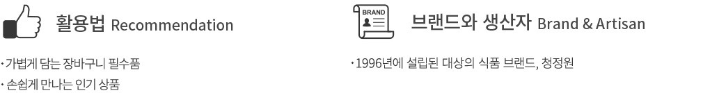 조림 요리의 완성도를 높이는 청정원의 조림간장을 만나보세요. 양조간장 베이스에 표고버섯 농축액, 다시마 엑기스, 마늘 농축액 등이 함유되어 감칠맛을 더했답니다. 은은한 단맛이 느껴져서 장조림, 두부조림 등 다양한 조림 요리에 활용하기 제격이겠죠. 일부러 마트에 가지 않고도 집에서 편하게 받아 볼 수 있도록 준비했으니 꼭 필요한 순간, 장바구니에 쏙 담아보세요.