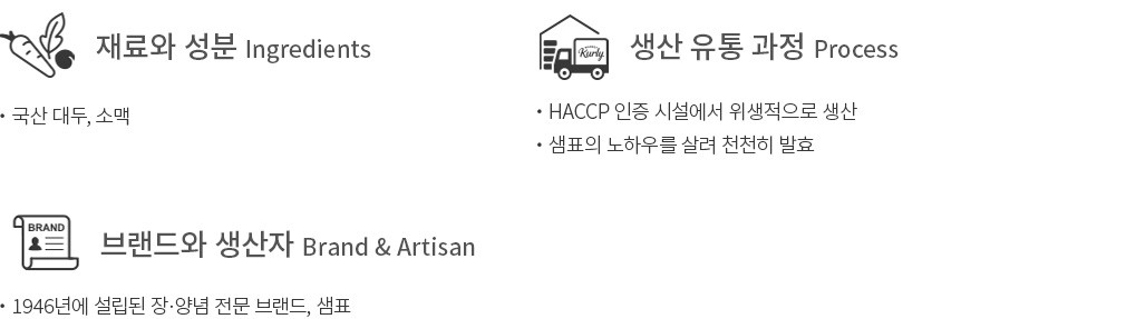 ・특징 : 국산 콩을 천천히 발효해 만든 간장입니다. 요리에 두루두루 사용하기 좋아요.