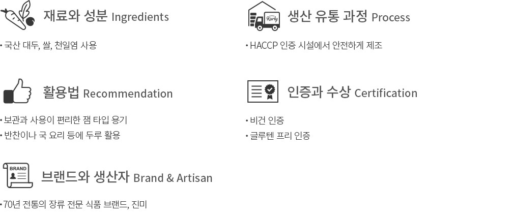 [한국 글루텐프리 인증 장류1호 선정] 두루 사용하는 구수한 된장
