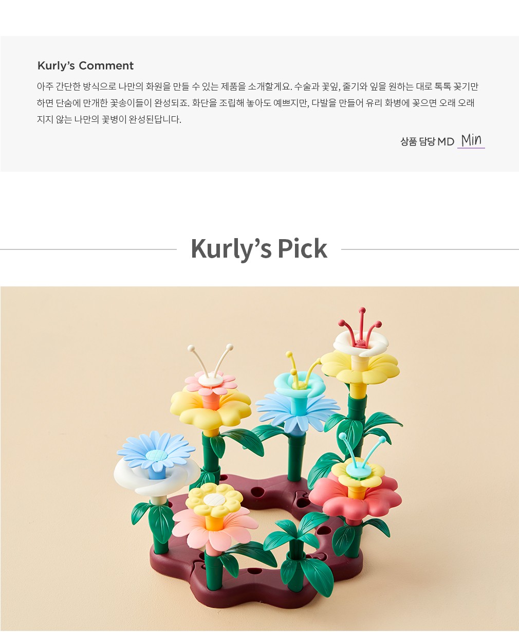 ・특징 : 꽃잎과 수술, 줄기와 화단을 조립해 나만의 플라워 가든을 만들 수 있는 완구입니다.