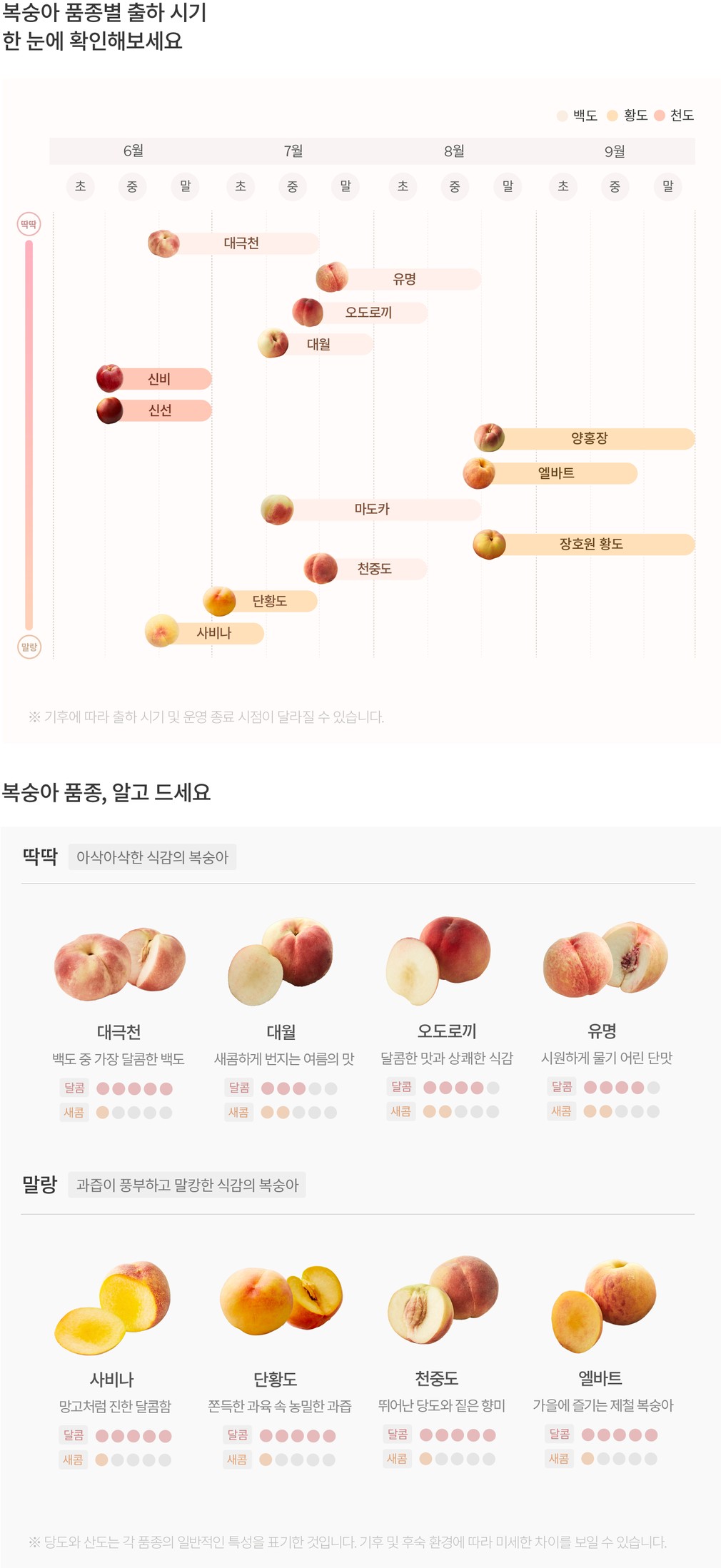 상품특성상 3%내외의 중량차이가 있을 수 있습니다. 신선식품 특성상 원물마다 크기 및 형태가 일정하지 않을 수 있습니다. 부드러운 복숭아인점 안내드립니다.