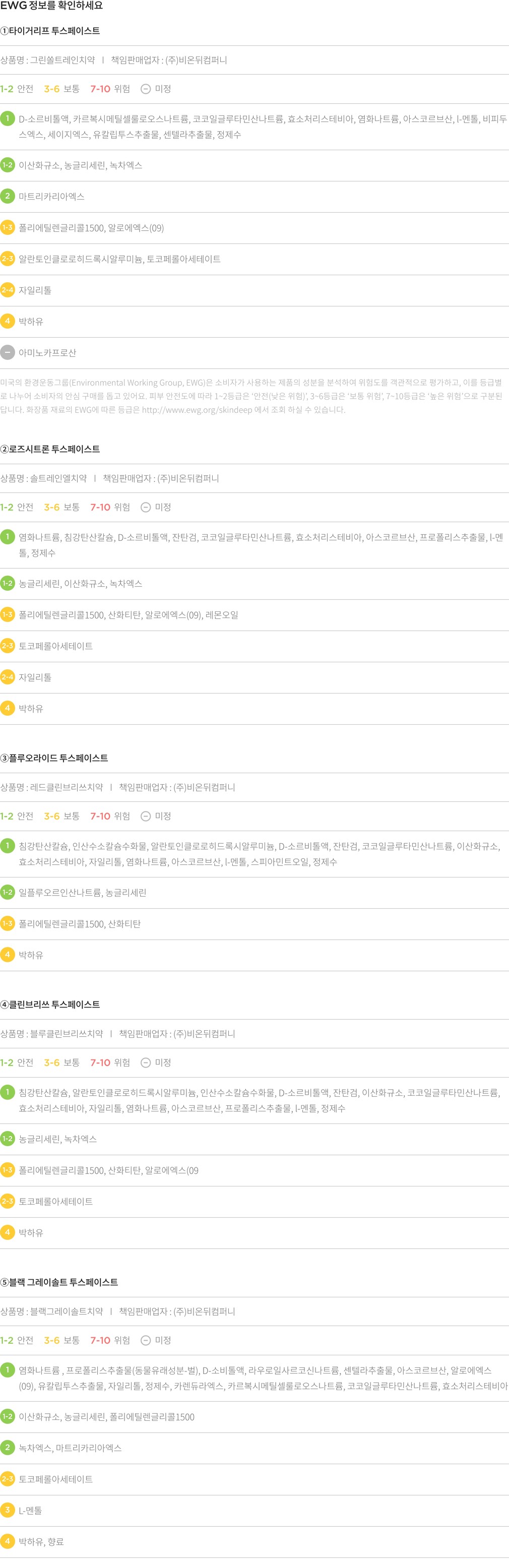 ・ 특징 : 부드러운 민트향의 무불소 치약으로, 토판염이 들어가 입안 가득 개운함을 선사하는 게 특징이에요.