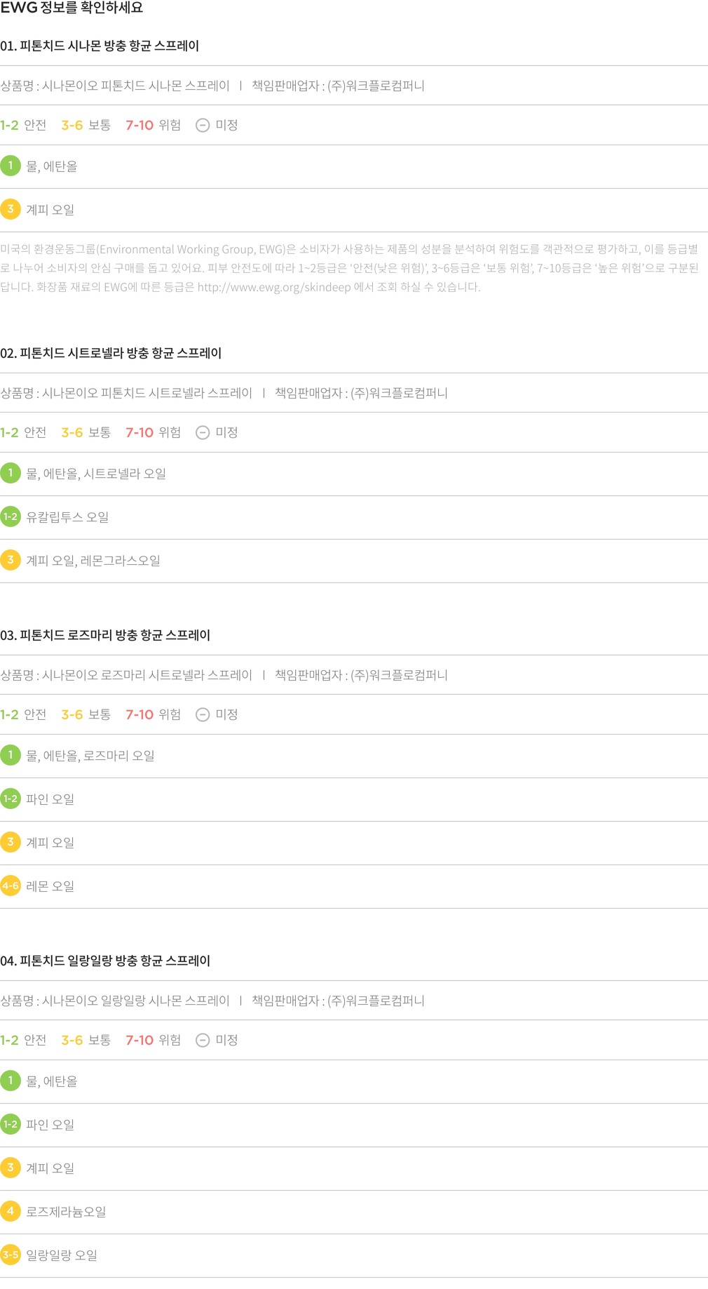 ・ 특징 : 방충, 탈취, 방향의 기능을 갖춘 항균 스프레이입니다. 계피 오일을 주성분으로시트로넬라 오일과 레몬그라스 오일, 유칼립투스 오일을 더해 만들었어요.