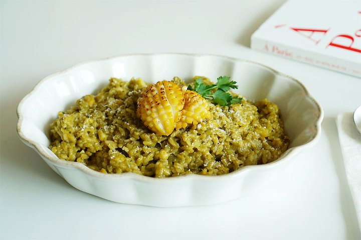 버터에 구운 전복과 치즈가루를 올리면 진하고 부드러운 전복리조또가 완성됩니다.