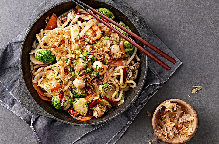 보통야끼우동은 굵은 우동 면과 신선한 채소, 해산물을 볶아 만든 일본식 볶음면입니다. 가쓰오부시가 위에 뿌려져 깊은 풍미와 비주얼을 더해주며, 바삭한 채소와 쫄깃한 면이 조화를 이루는 요리입니다. 평점 4.7점(32)의 평가가 있어요. 14가지 재료로 3인분을 30분 안에 완성! 7단계의 보통 난이도 레시피입니다. 1인분당 26,503원 정도의 재료비가 들어요.