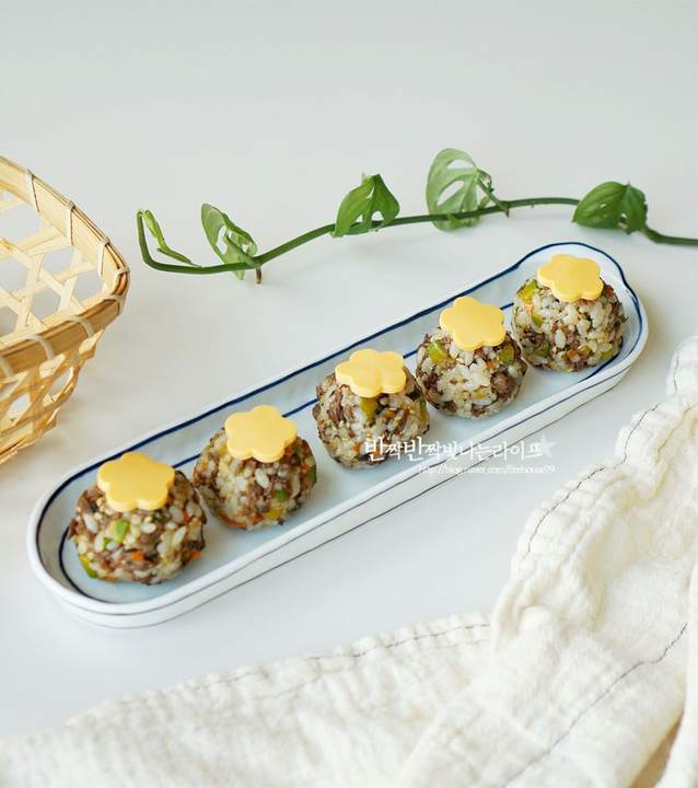 소고기 주먹밥에 치즈를 올려 더 맛있고 풍성하게 즐길 수 있습니다. 간단한 레시피로 소고기, 채소, 김가루, 참기름 등을 섞어 고소하고 풍부한 맛을 느낄 수 있습니다.
